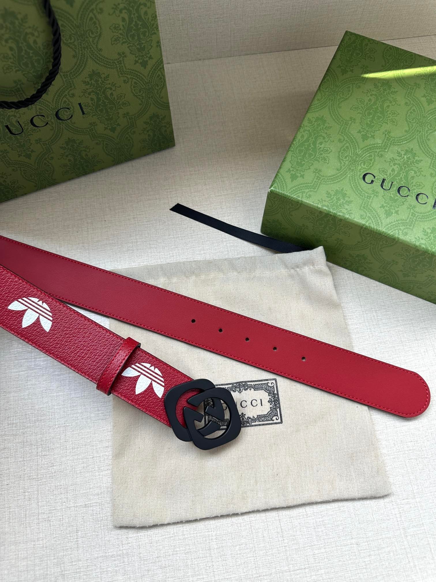 adidas x Gucci joint series leather belt Wide band: 4.0cm