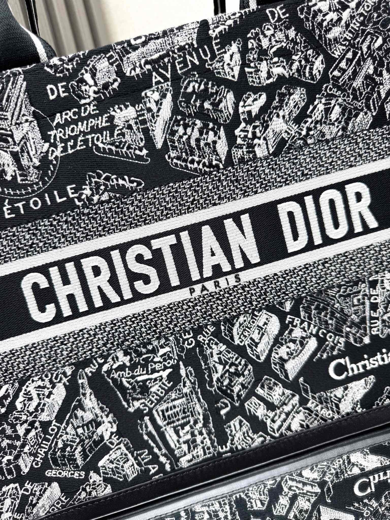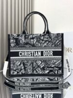 Dior Embroidered Leather With Shoulder Strap 【Medium】 Book Tote Shopping Bag