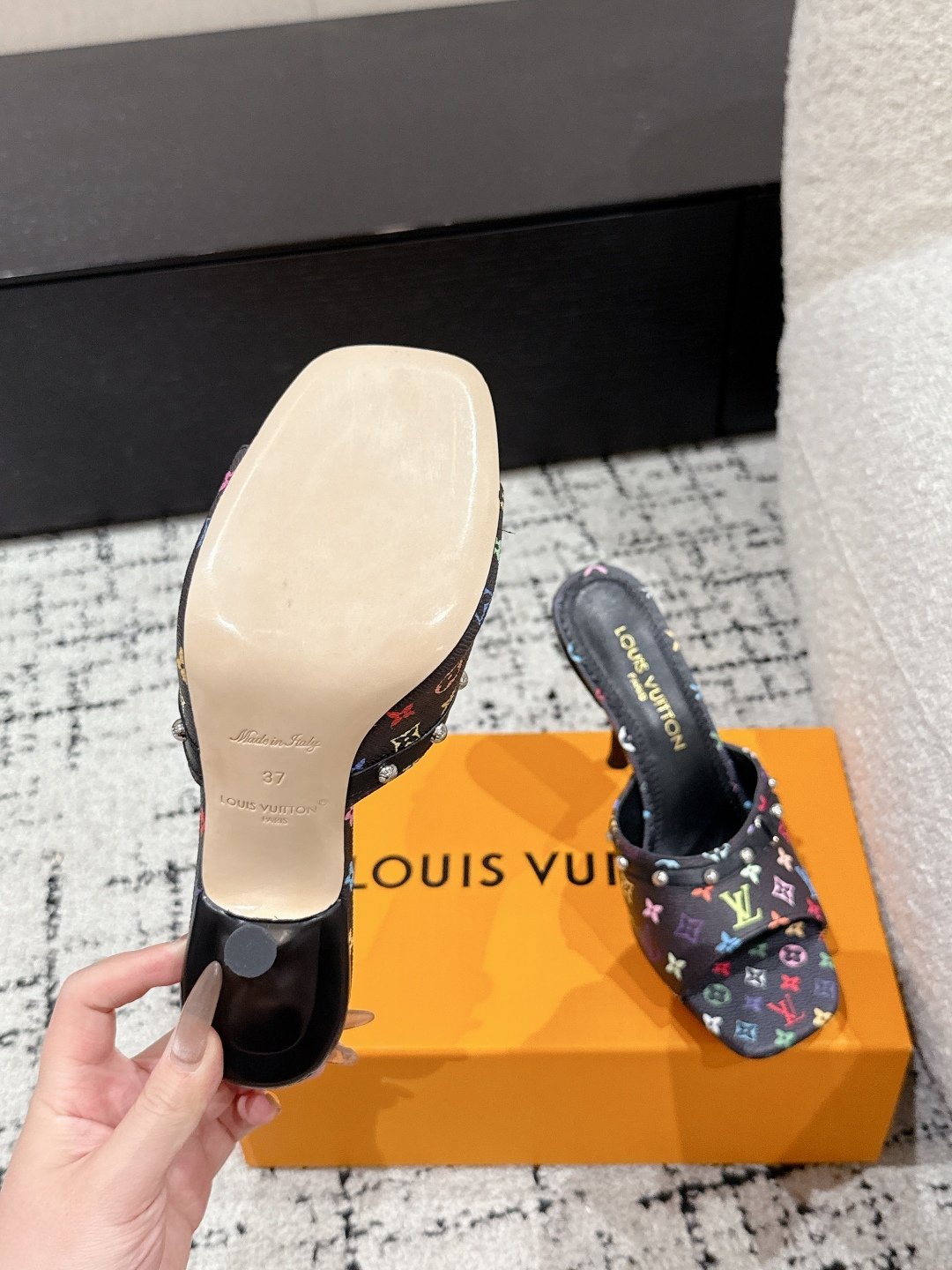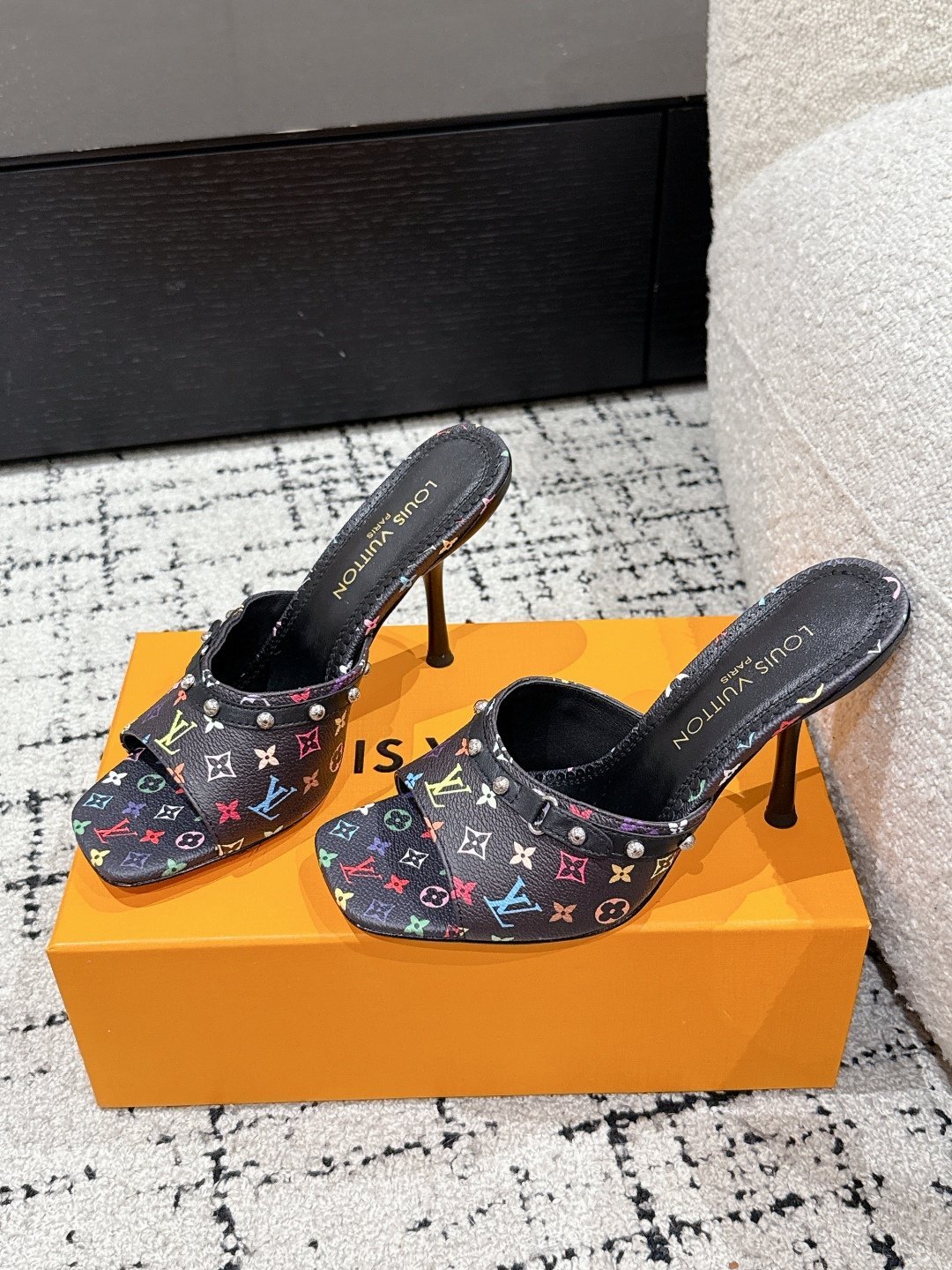 Takashi Murakami x LOUIS VUITTON 25/6AM square toe open toe high heels Heel height: 7.6cm