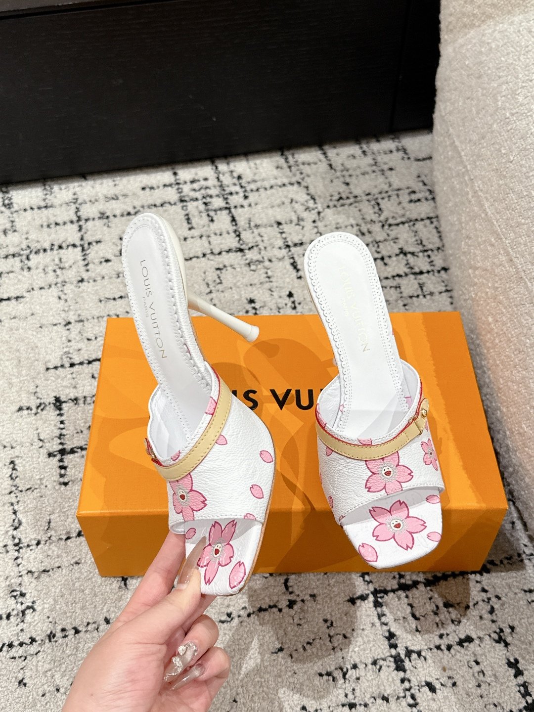 Takashi Murakami x LOUIS VUITTON 25/6AM square toe open toe high heels Heel height: 7.6cm